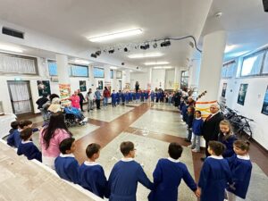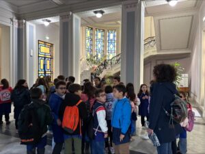 Ieri, mercoledi 8 ottobre, una rappresentanza di alunni e insegnanti della scuola primaria del nostro Istituto si è recata in visita alla Fondazione “Maria Grazia Barone”, una storica realtà ed un’eccellenza della città di Foggia. L’incontro, nato dal desiderio di inclusione di due mondi e generazioni differenti (ed apparentemente distanti), è stato un successo. I Piccoli Alighieri delle classi 3A e 3B ricevuti dalle educatrici e dalla direttrice della R.S.S.A., dott.ssa Daniela Tartaglia, hanno avuto dapprima l’occasione di visitare l’antico e bellissimo palazzo nobiliare della marchesa Barone, con particolari in stile Liberty. A seguire hanno incontrato alcuni ospiti della struttura che hanno raccontato com’era la scuola durante la guerra e dopo la guerra, com’era difficile poter andare a scuola o continuare gli studi per le condizioni disagiate di quel periodo storico o per la lontananza della scuola, che si doveva raggiungere a piedi, dalla propria abitazione. I nostri alunni invece hanno portato le esperienze e le mode delle nuove generazioni, i nuovi approcci educativi e metodi scolastici, i nuovi materiali e sussidi, l’abbigliamento, la facilità di potersi recare a scuola, le moderne abitudini familiari. E’ stato sicuramente un incontro arricchente dal punto di vista della narrazione di esperienze: i nostri alunni hanno offerto uno spaccato di attualità agli anziani ospiti, mentre questi ultimi hanno insegnato qualcosa del passato ormai un po’ perso, segno che da entrambe le generazioni si può scoprire e imparare qualcosa di importante. Ma soprattutto è stato un bellissimo momento di scambio di emozioni!