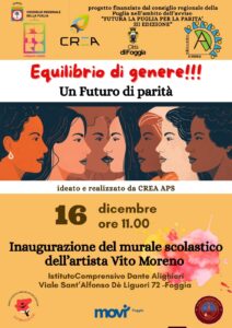 CREA a.p.s. e l’Istituto “Dante Alighieri” sono lieti di invitarvi all’inaugurazione del murale sulla parità di genere:
