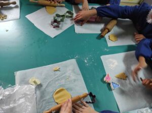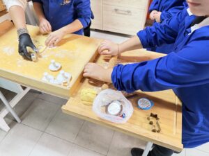 Chi è èntrato nella nostra scuola in questi giorni ne ha sentito sicuramente il profumo (e qualcuno ne ha anche assaggiato il buon sapore!), il profumo dei biscotti preparati dai nostri bambini. La splendida ed attrezzatissima cucina della sede centrale del nostro Istituto infatti questa settimana è stata animata dai Piccoli Alighieri delle classi 3A, 3B, 5A, 5B. E non è stato solo un “passatempo” natalizio. Preparare biscotti è una preziosa opportunità educativa e creativa per i bambini, perché offre un ambiente ideale per stimolare la creatività, l’apprendimento pratico e lo sviluppo di abilità fondamentali.