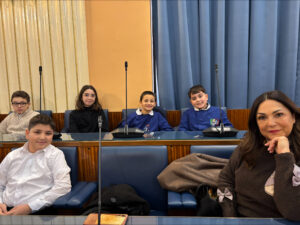 Questa mattina nell’Aula Consiliare del Comune di Foggia si è tenuta la prima seduta del Consiglio Comunale dei Ragazzi (CCR) della nostra città. Il Consiglio Comunale dei Ragazzi è un organismo istituzionale di partecipazione fortemente educativo, composto da studenti di scuole primarie e secondarie, nato per avvicinare i giovani alle istituzioni e promuovere la cittadinanza attiva. Eletti dai compagni di scuola, i ragazzi di classe quarta e quinta primaria e prima e seconda secondaria, discutono e propongono progetti su ambiente, sport, cultura e tempo libero, con il supporto di amministratori locali e insegnanti. Oggi infatti i nostri alunni eletti Azzarone Diego (5^ sez.A), Loffredo Daniel (2^ sez.F), Tenore Laura (1^ sez.B), Valente Francesco Paolo (4^ sez.A) hanno partecipato alla prima convocazione in cui si è eletto il Sindaco Junior della città di Foggia. L’elezione si è svolta alla presenza della sindaca M. Episcopo e di rappresenti istituzionali. Il nuovo primo cittadino junior è Giuseppe Stallone, alunno della scuola “Parisi-De Santis”. Eletti assessori i nostri alunni Diego Azzarone e Daniel Loffredo, saranno consiglieri invece Laura Tenore e Francesco Paolo Valente.