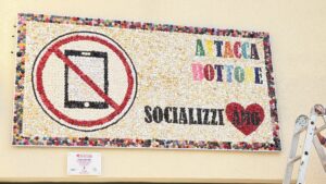 Il nome del murale”socializziAMO”, difatti, si collega a questo invito. Vogliamo invitare tutti a creare routine “social -free”, rendere i dispositivi elettronici meno interessanti, trovare alternative offline, come ad esempio tornare a riempire il tempo libero con hobby, lettura, sport o relazioni sociali in presenza.